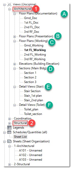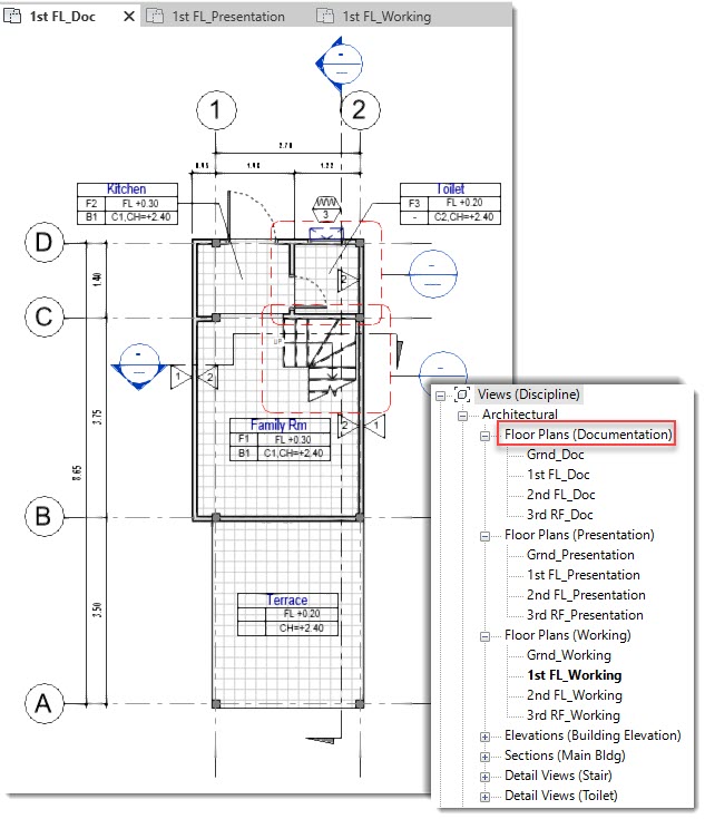 การจัดหน้าวิวในหน้าต่างของ Project Browser ก็มีความสำคัญมาก เพราะถ้าจัดได้ดี ก็จะเข้าถึงหน้าวิวนั้นๆ ได้ง่ายกว่าเดิม