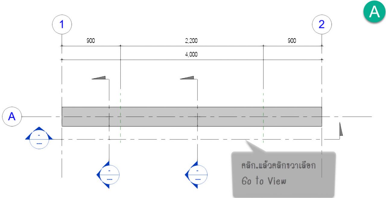 โดยการเลือกแนวรูปตัดทั้งหมด หรือบางตัว (คลิกขวาเลือก >Select all Instances >Visible in View) แล้วจากนั้นคลิกขวาเลือก Hide in View >Elements